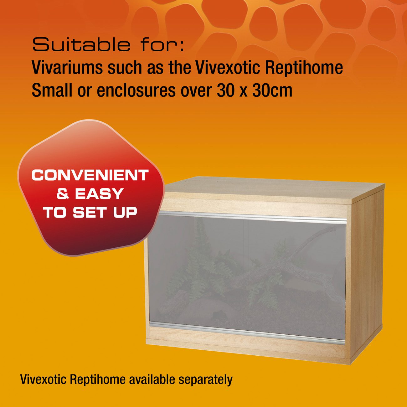 - Recommended for use with vivariums over 30 x 30 cm