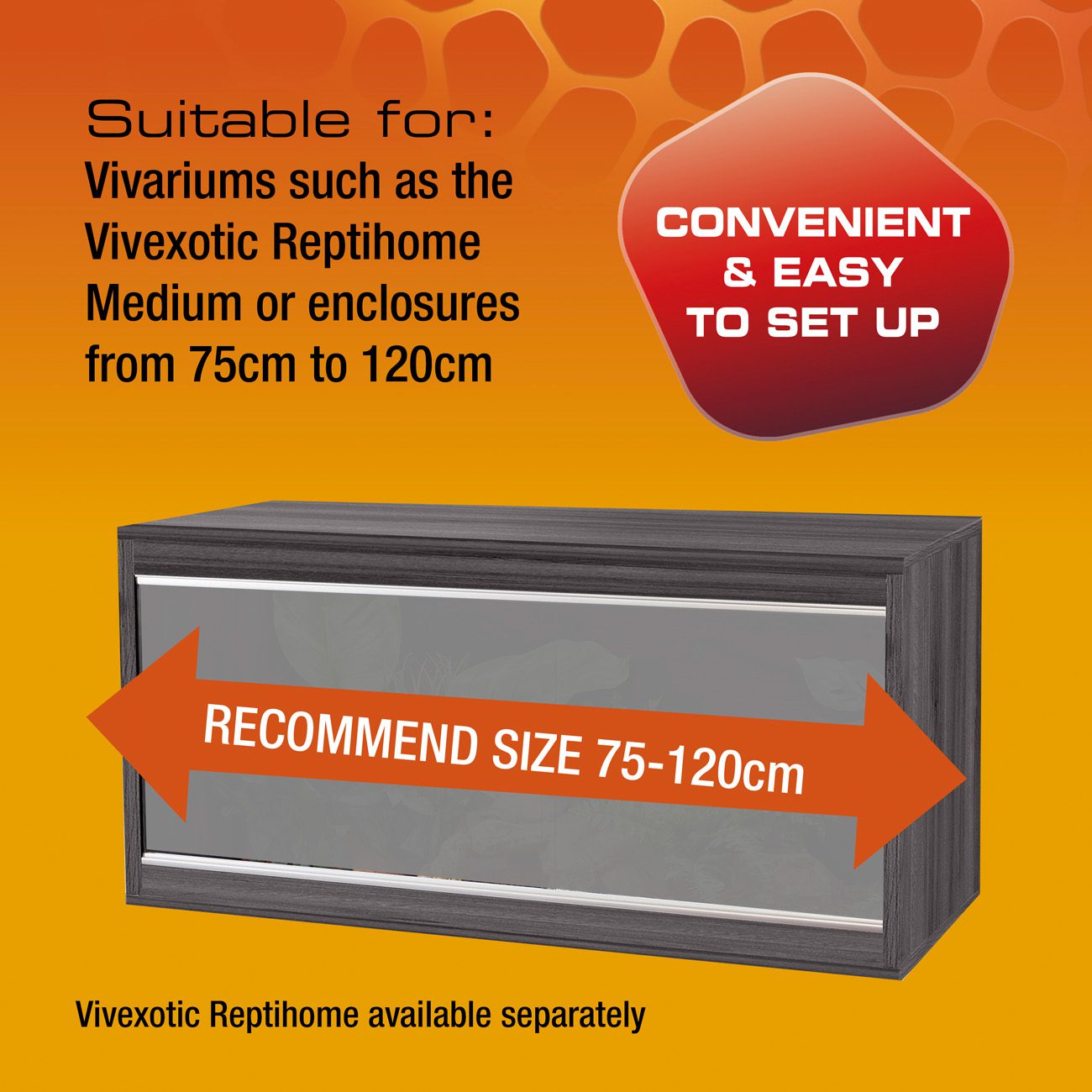 - Recommended for use with vivariums from 75 to 120cm