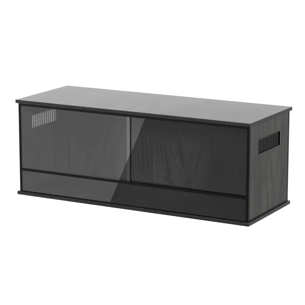 The ProRep Vivarium Black 4ft is a spacious and practical enclosure designed for reptiles needing more room to explore. With durable aluminium framing and lightweight melamine-coated panels, it offers excellent strength and rigidity while keeping weight manageable. The side vents, ventilation lip, and flip-able panels provide tailored airflow for maintaining healthy environments, while the sliding glass doors give an uninterrupted view.