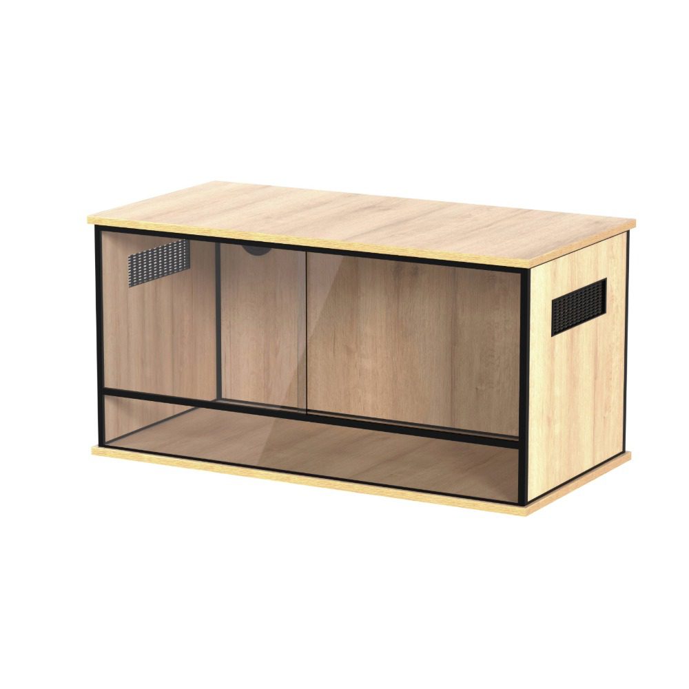 The ProRep Vivarium Oak 3ft offers versatility, strength, and style. With its warm oak finish and durable construction, it suits a wide range of reptiles. Full-height sliding glass doors ensure excellent viewing, while the advanced ventilation design helps maintain a healthy environment. Lightweight yet rigid, this vivarium is easy to assemble, transport, and stack.